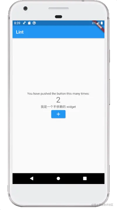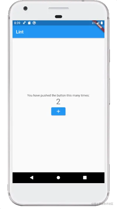 到这里计数器功能差不多就完成了,当我们点击浮动 + 按钮时,计数器的数值会累加,最后可以看到效果就是这样。