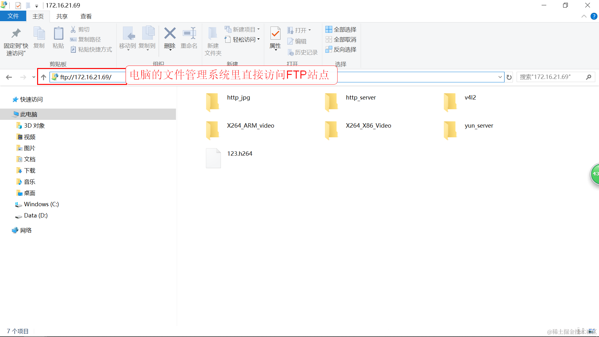 电脑文件管理系统里访问FTP站点: