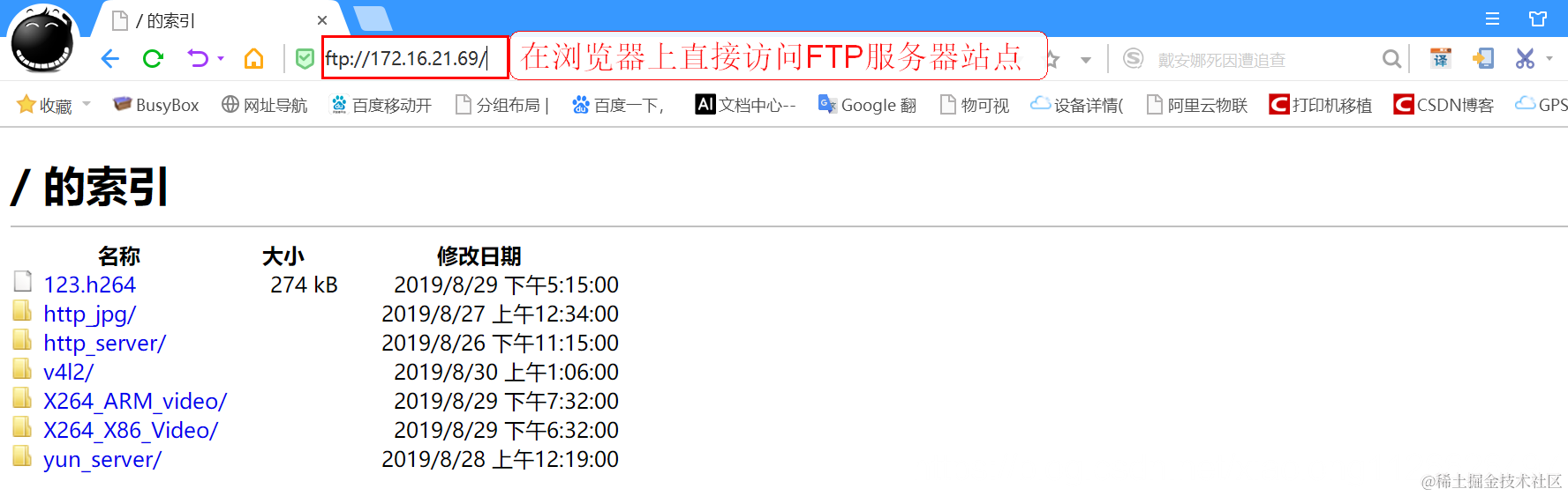 浏览器上直接访问FTP服务器站点: