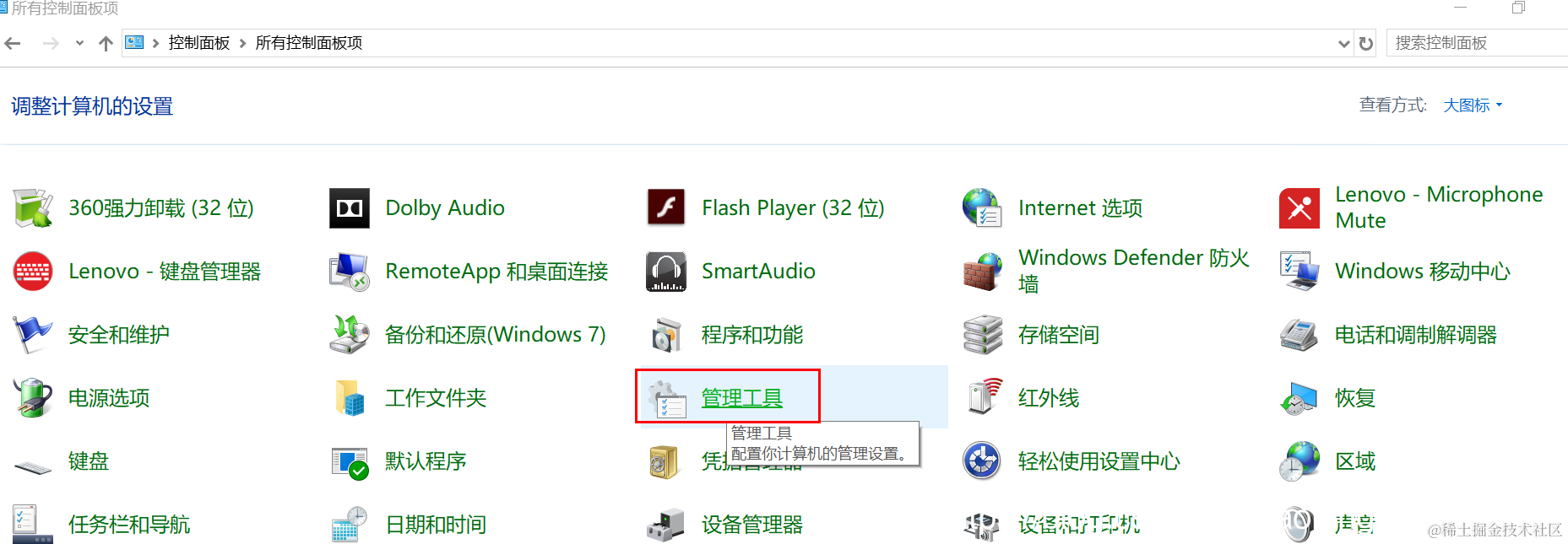 选择管理工具: