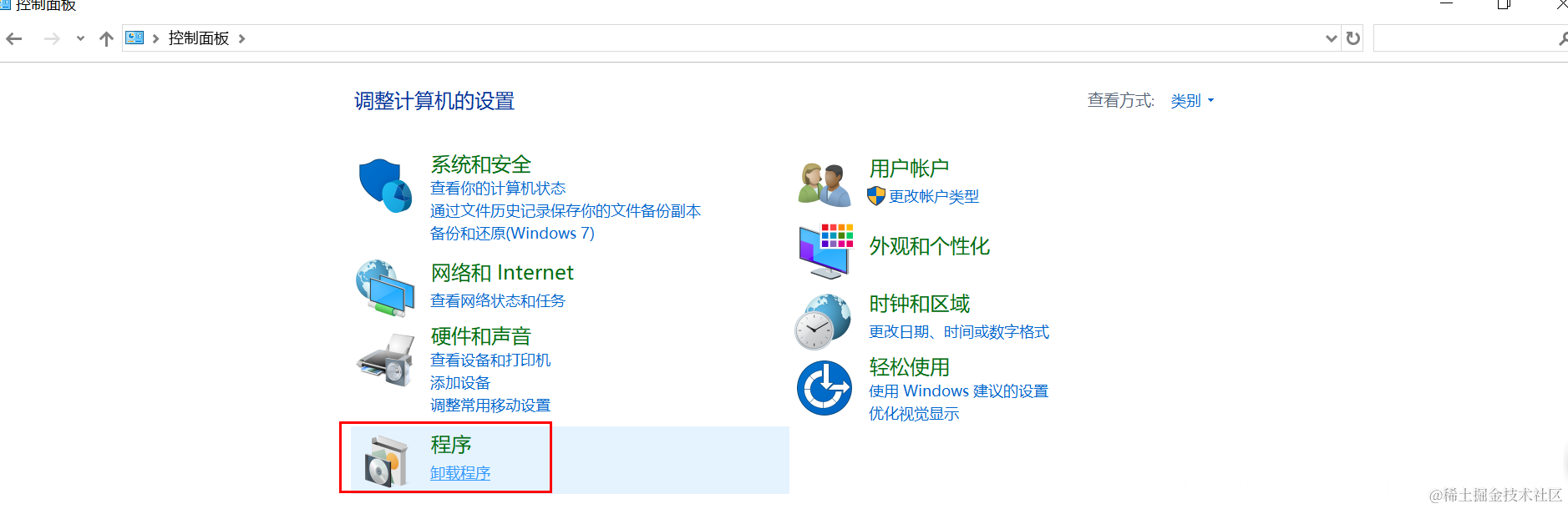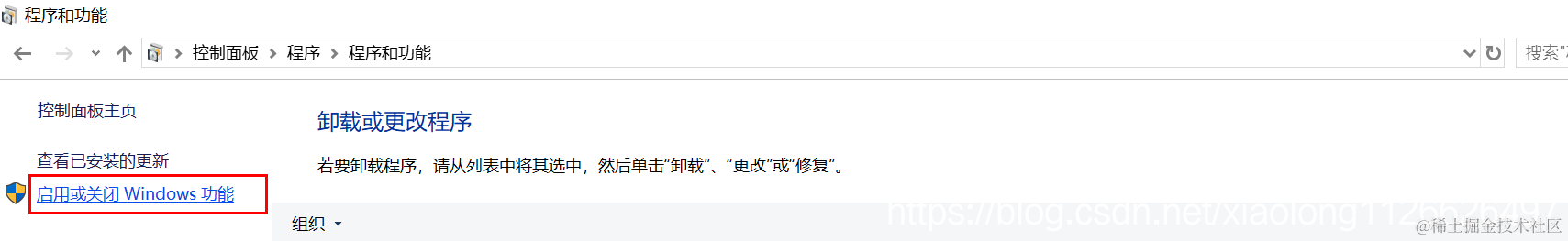 进入程序更改页面\启动windows自带的功能