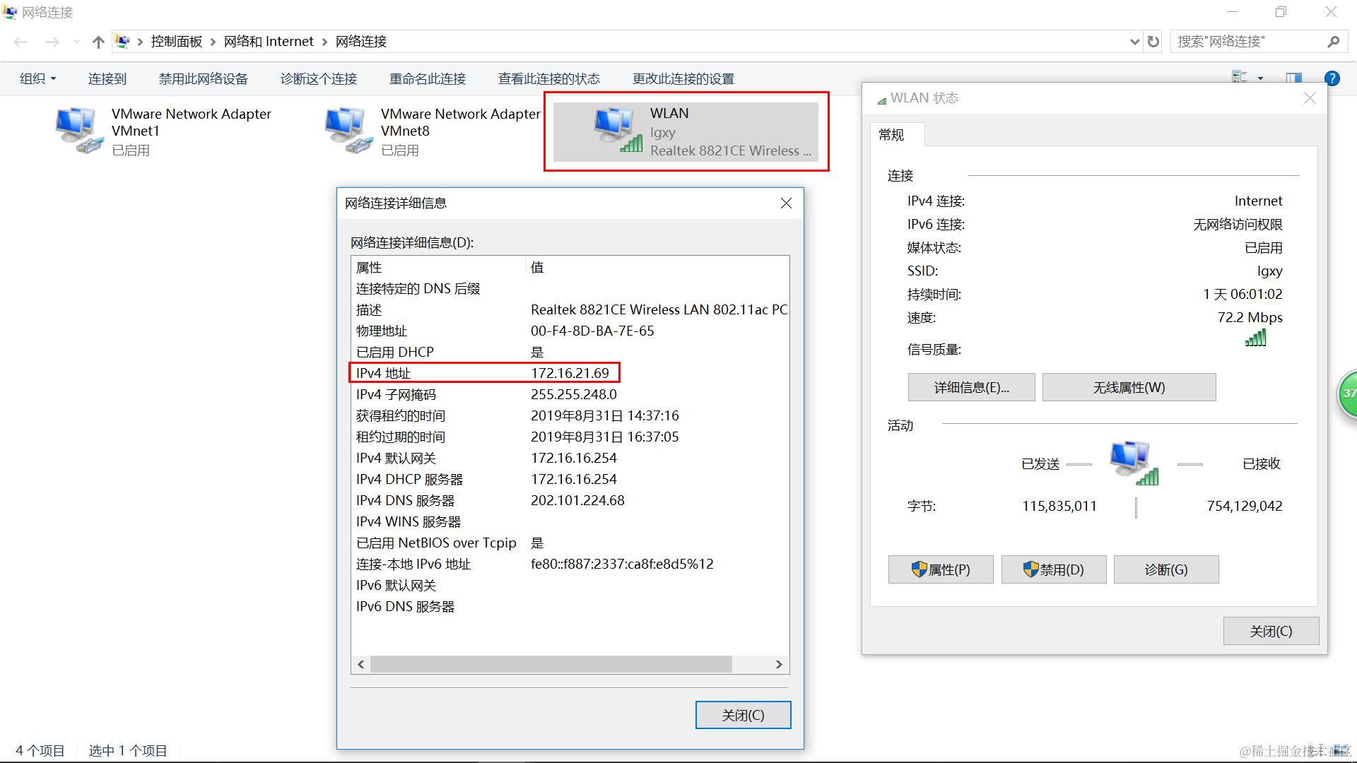 比如: windows系统当前使用的WIFI方式上网,IP地址为172.16.21.69。