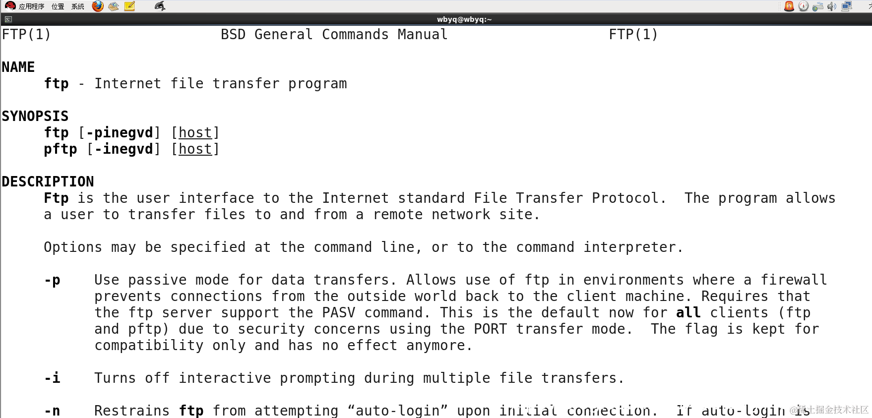 | [wbyq@wbyq ~]$ man ftp |