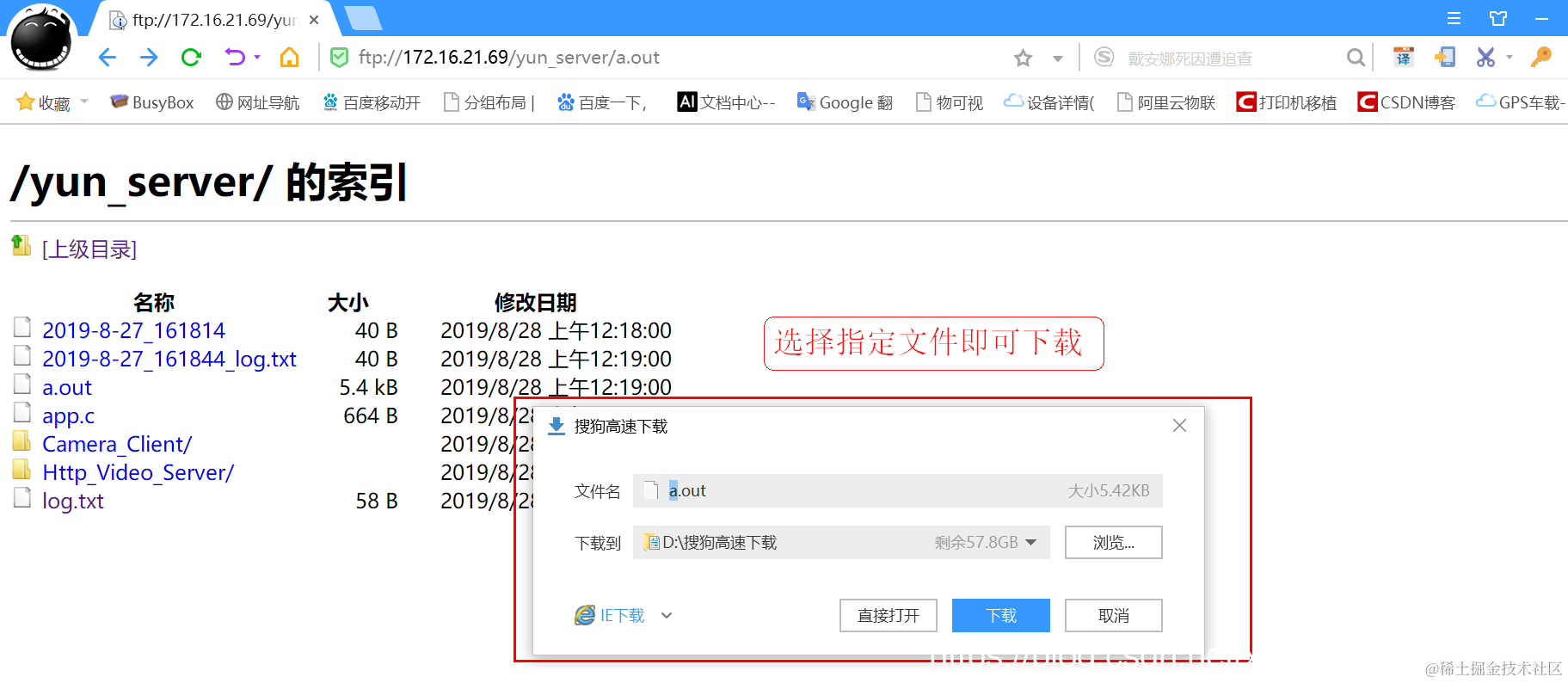 在浏览器上直接下载FTP站点的内容: