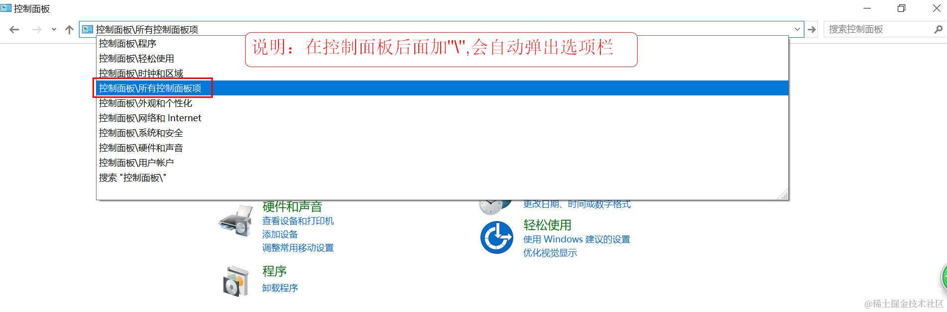进入控制面板页面\所有控制面板选项: