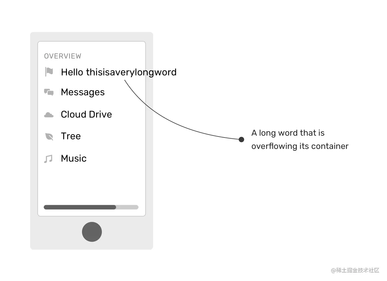 溢出的另一个常见原因是一个长字不适合在视口中出现。由于视口的宽度,这种情况在移动端发生得更多。