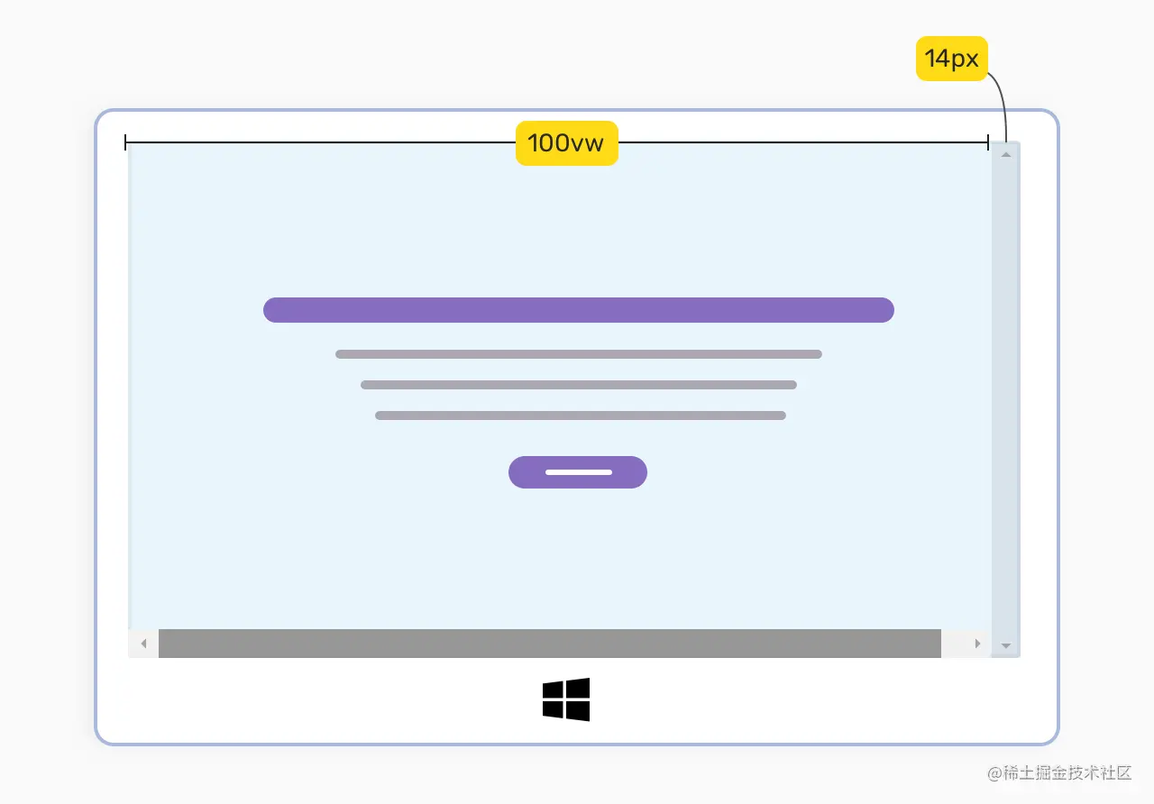 然而,我们可以使用JavaScript来测量视口的宽度,不包括滚动条。