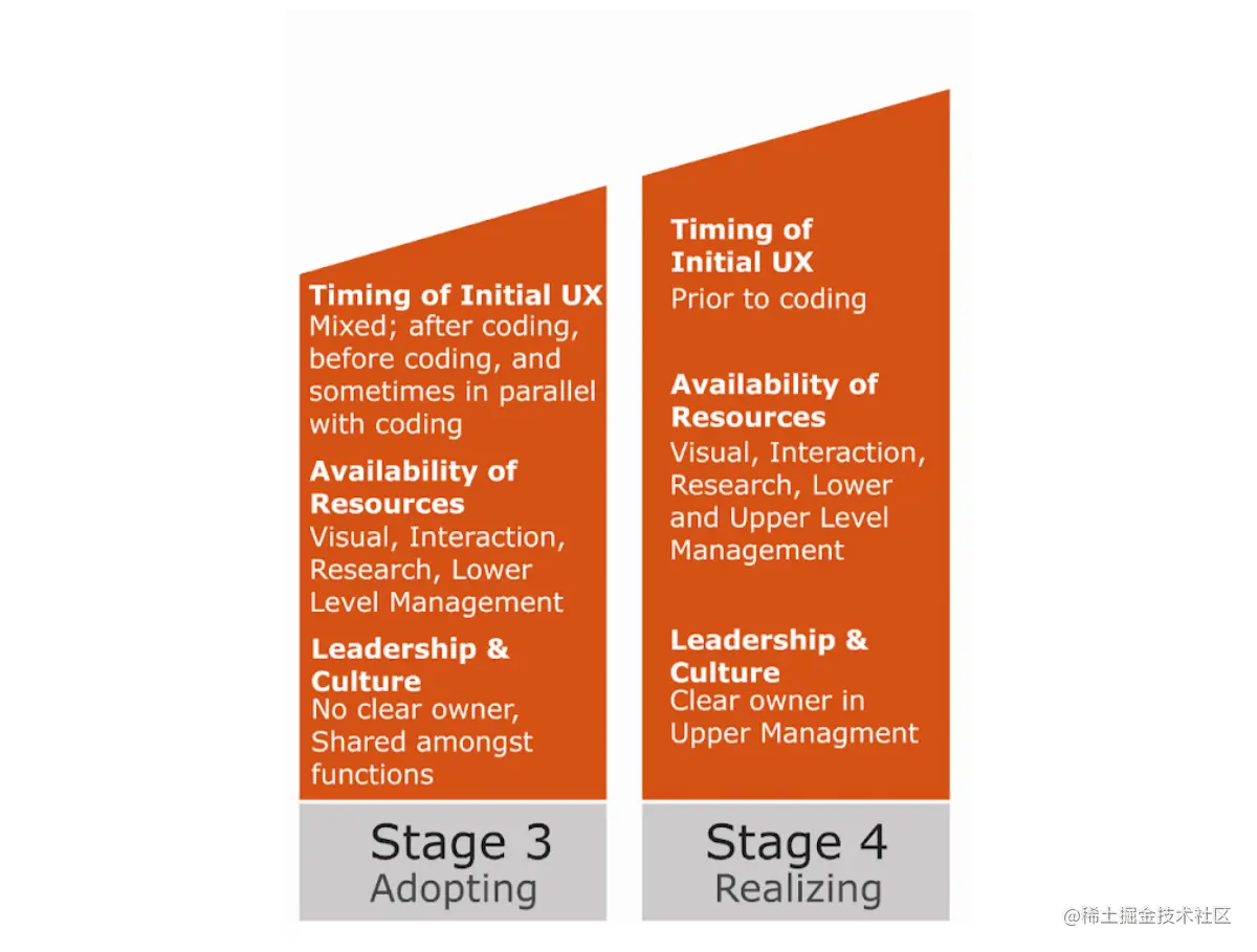 所有的成熟阶段都需要用户体验人员的持续教育。 - 对非用户体验人员进行用户体验原则和流程方面的教育