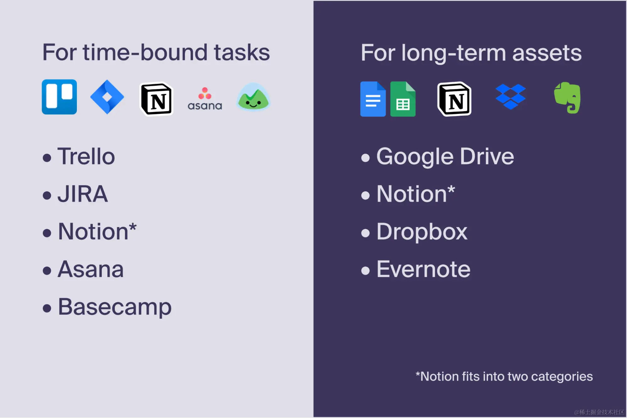 就个人而言,我是Google Drive的粉丝,因为它的简单性、可及性和对不太懂技术的同事的易用性。谷歌硬盘工具的一个很好的替代品是Dropbox和Dropbox Paper。还有Notion,另一个流行的应用程序--它是一个任务管理器和内容保存者的组合。当然,这并不是一个详尽的清单,但它们对我来说很有效。