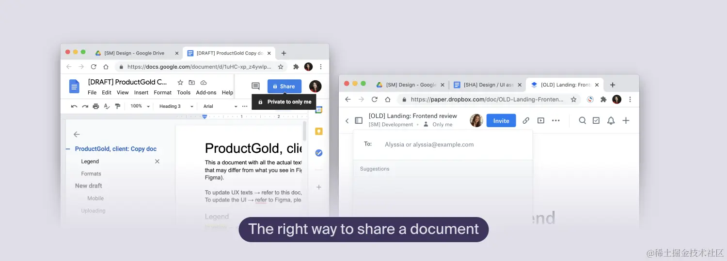 但要小心。在许多应用程序中,这种方式会将链接分享到你的私人工作区,但不会分享到该文件的公共版本。或者只是分享一个受限制的文件,不给正确的权限。当然,这将导致人们等待你的批准,或不必要的电子邮件,你必须逐一处理。