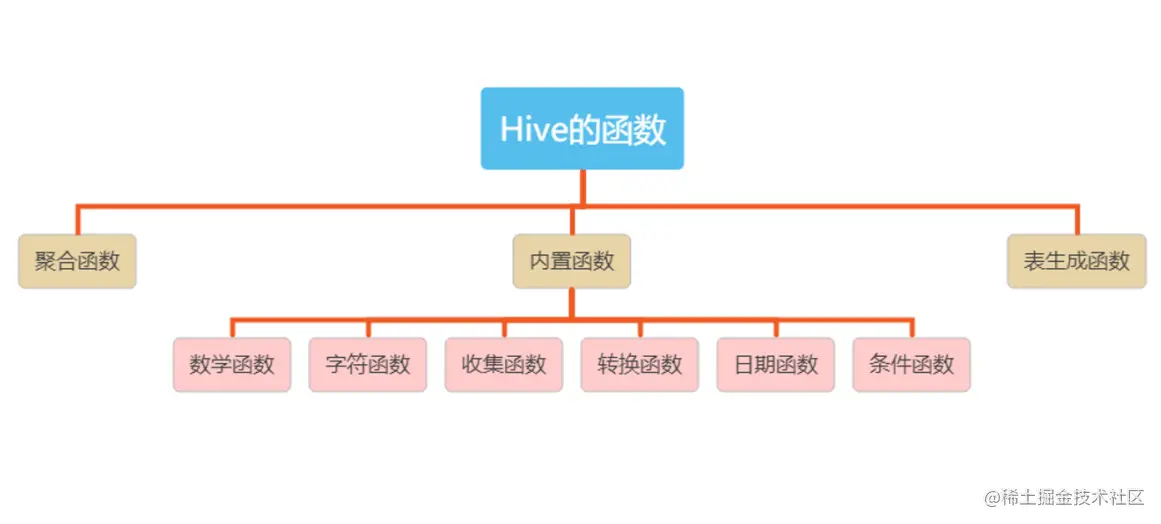 Hive的函数分为三类: 聚合函数、内置函数,表生成函数,聚合函数之前已经学习过了,接下来学习内置函数和表生成函数.