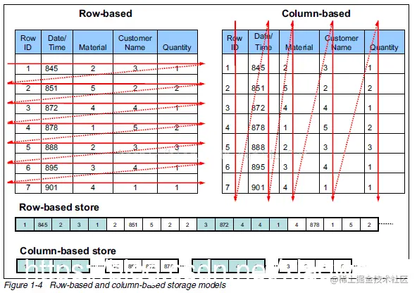 行存储的特点 **: **查询满足条件的一整行数据的时候,列存储则需要去每个聚集的字段找到对应的每个列的值,行存储只需要找到其中一个值,其余的值都在相邻地方,所以此时行存储查询的速度更快。