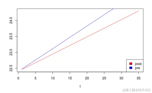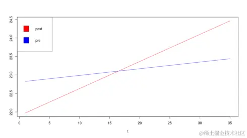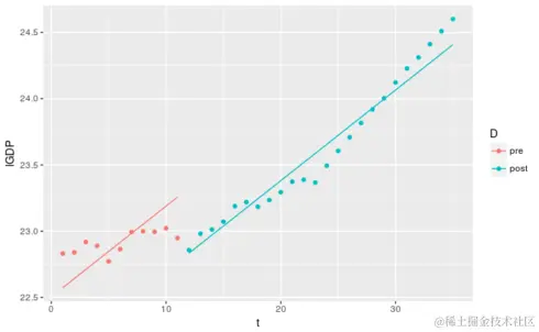 在上述结果中,显然相互作用项(tD)在统计学上不显着,因为相应的p值远高于显着性水平(5%或0.05)。这意味着经济改革不会影响斜率。