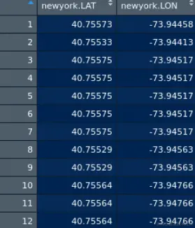 newyorkdf <-data.frame(纽约$ LAT,纽约$ LON)