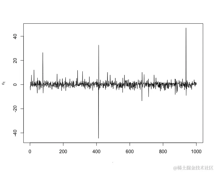 plot(eps, type = "l", xlab = "t", ylab = expression(epsilon[t]))