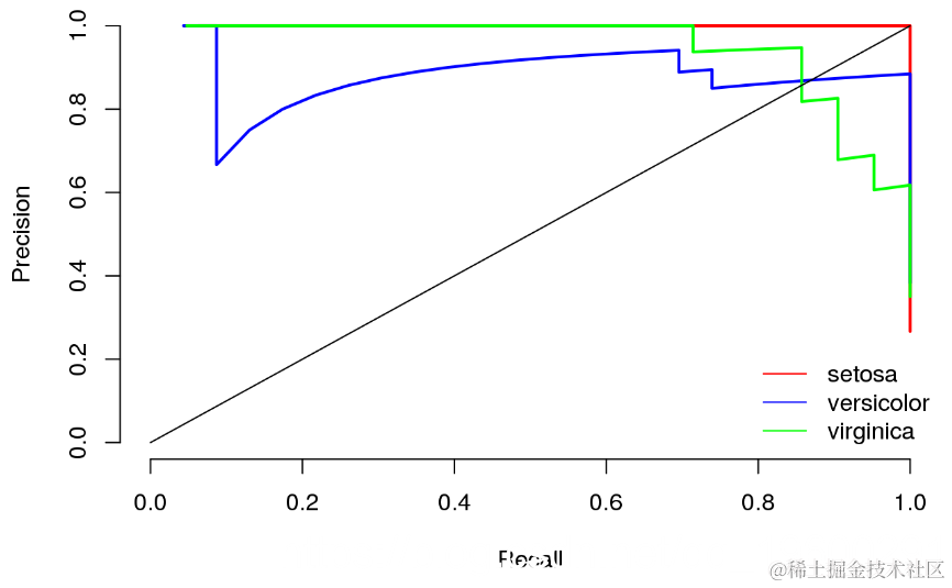 一对一的精确召回曲线