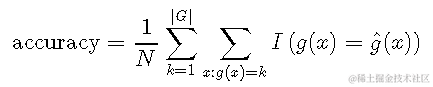 其中\(I \)是指标函数,如果类匹配,则返回1,否则返回0。