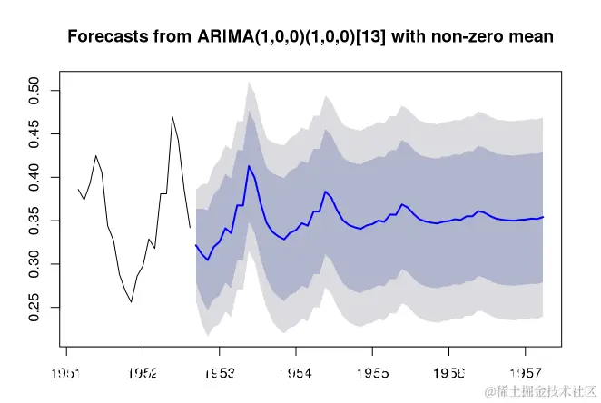 forecast <- forecast(A, h = 60) # 预测未来5年