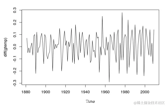 使用R,我们可以使用diff函数计算滞后差分。函数的第二个参数表示所需的滞后k,默认设置为k=1。例如:
