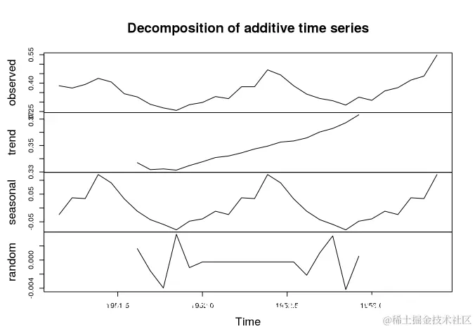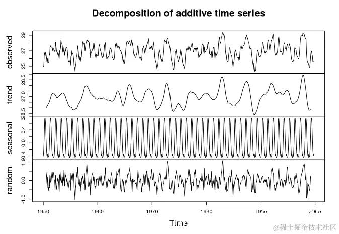 执行分解的方式取决于时间序列数据是加法还是乘法。