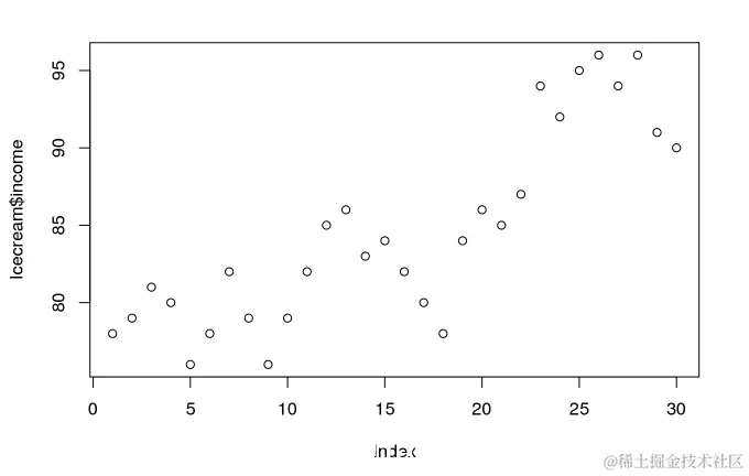 我们将模拟消费,冰淇淋消费作为时间序列,并使用收入,价格和平均值作为外生变量。在开始建模之前,我们将从数据框中创建一个时间序列对象。