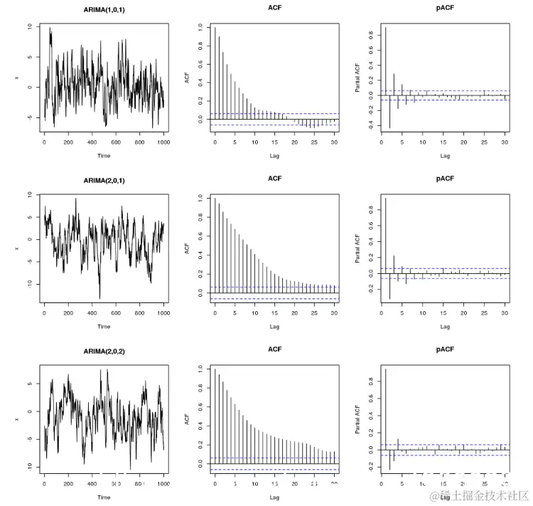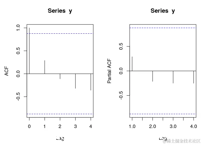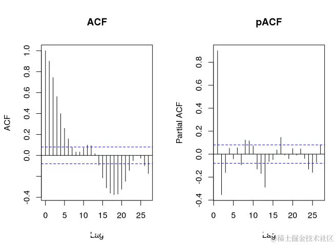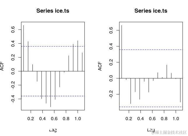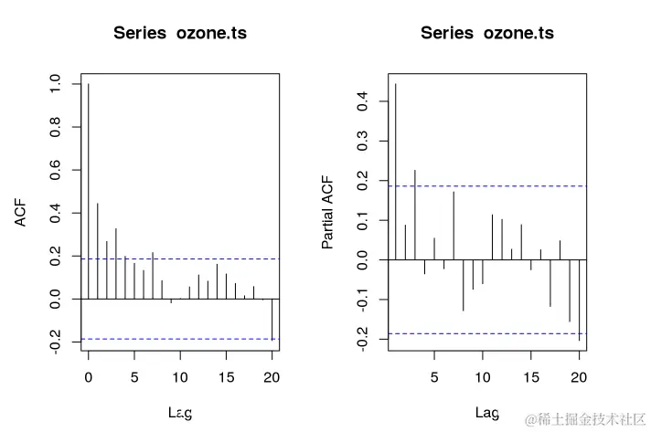 为了确定哪个更合适,AR或MA,我们需要考虑ACF(自相关函数)和PACF(偏ACF)。