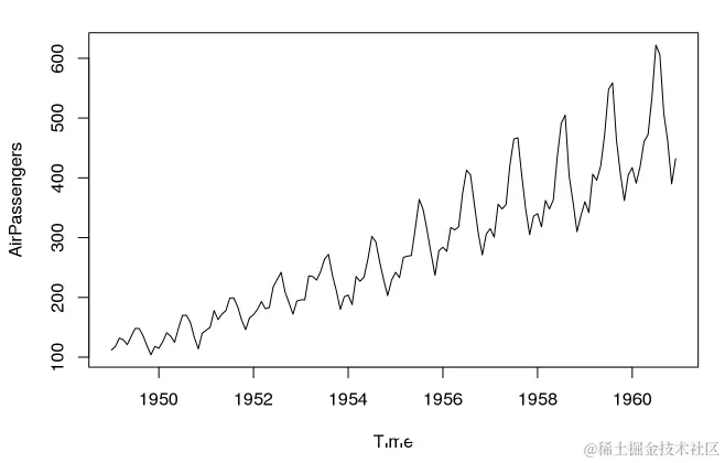 plot(x, main = "Stationary process")# 飞机旅客数据