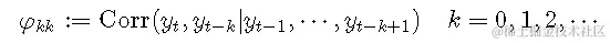 由于观察到较大滞后的自相关可以是较低滞后的相关结果,因此通常值得考虑偏自相关函数(pACF)。pACF的想法是计算偏相关性,这种相关性决定了对变量的最近观察样本的相关性。pACF定义为: