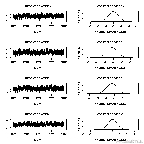 ## gamma[20] -0.26230 0.59741 1.024962 1.45275 2.28854