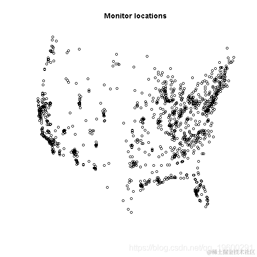 plot(s,axes=FALSE,xlab="",ylab="",main="Monitor locations")
