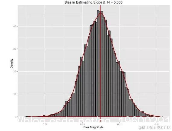 被省略,仿真得到的红色采样分布,围绕0.5895居中。它偏离.5895的真实值。此外,偏差采样分布的方差远小于周围的真实方差