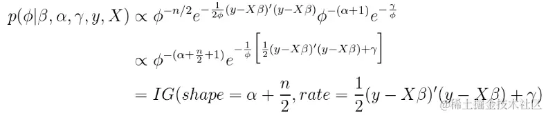 在对采样器进行编码之前,我们需要导出Gibbs采样器的 每个参数的后验条件分布。
