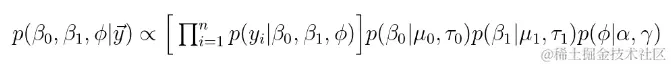 。如果我们将正态先验放在系数上,将反伽玛先验放在方差项上,则此数据的完整贝叶斯模型可以写为: