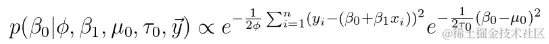为了找到参数的条件后验,我们简单地删除不包含参数后验的所有项。例如,常数项条件后验: