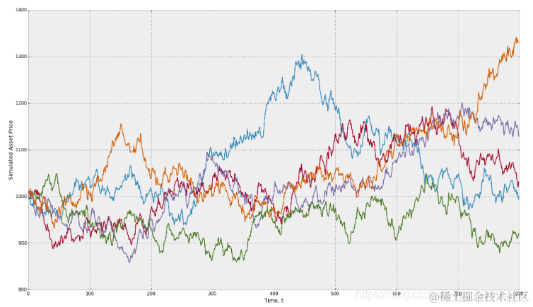 在实践中,布朗运动不用于模拟资产价格。我将其包含在内,因为它是本文中讨论的每个其他随机过程的基础。