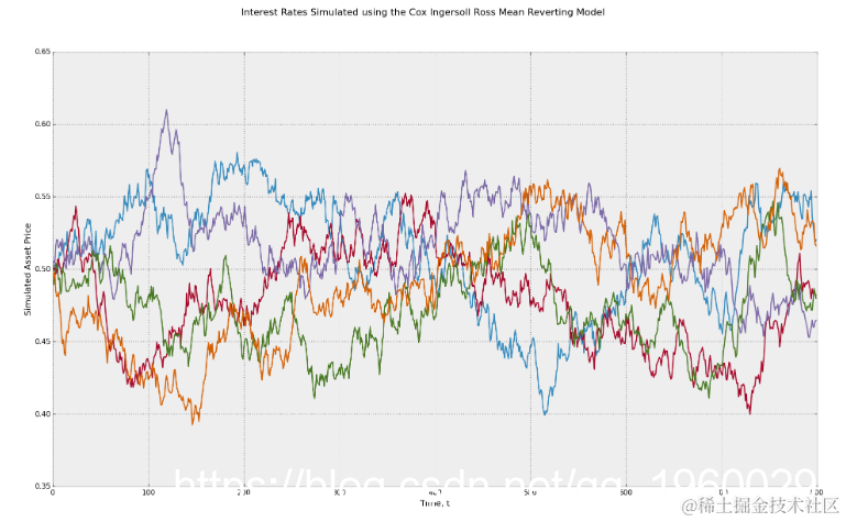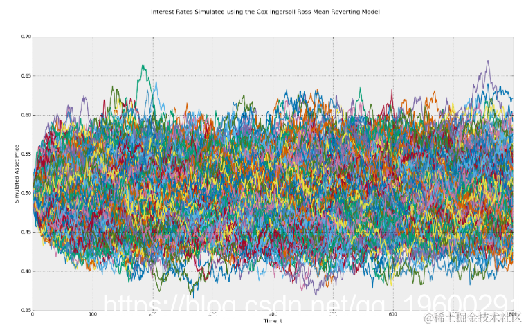 利用Cox Ingersoll Ross均值回归随机过程模拟利率。