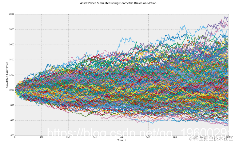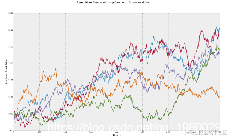 使用几何布朗运动随机过程模拟资产价格。