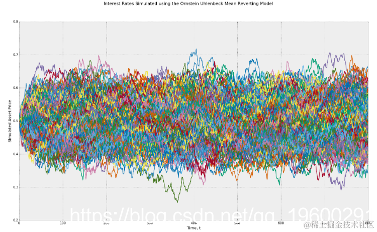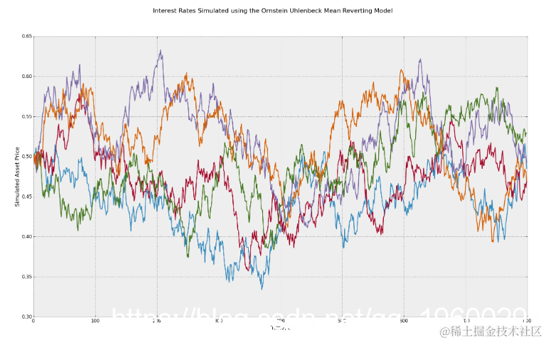 利用Ornstein Uhlenbeck均值回归随机过程模拟利率。
