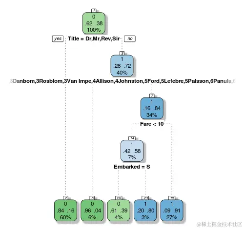 但在大多数情况下,由于决策树的贪婪性,标题或性别变量将决定第一个决策。对于多层次因素的偏见也不会消失,如果没有实际提交意见书,过度拟合问题很难衡量,但良好的判断力可能会有所帮助。
