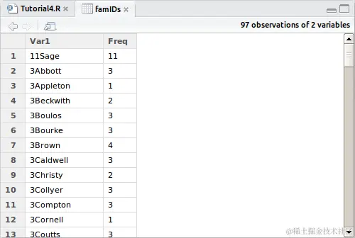 > famIDs <- data.frame(table(combi$FamilyID))