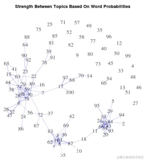 我遇到的一个问题是:如何衡量主题之间的关系(相关性)?我想创建一个连接类似主题的网络可视化,并帮助用户更轻松地浏览大量主题。