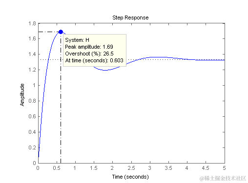 单击标记可在数据提示中查看峰值响应的值和过冲。