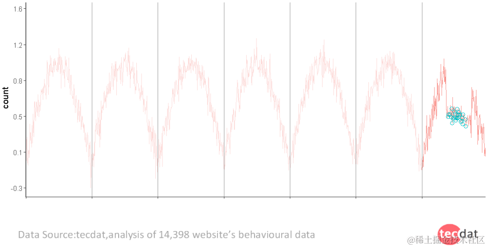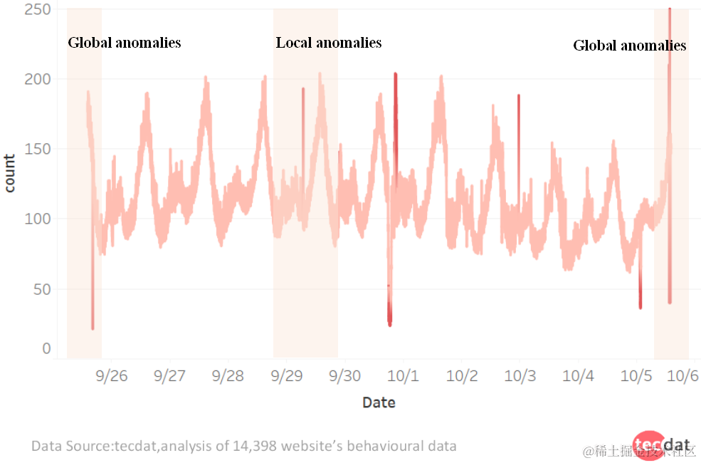 很多时候我们可以看到数据的潜在趋势,看起来像一个“波浪”:早上的活动不足,白天很高,晚上很低。 局部异常发生在这种情况下。 例如:晚上的高活动意味着异常。