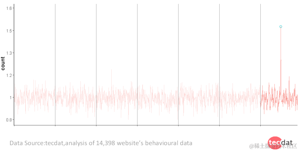 这是我们最熟悉的那种异常现象。 这是一个随机出现在平常时间的异常现象。 一般使用95%分位数就可以检测到。