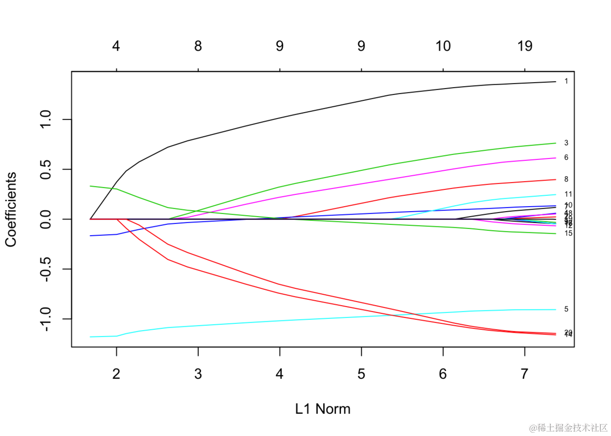 fit=glmnet(x,y)“适合”是类的一个对象,glmnet它包含拟合模型的所有相关信息以供进一步使用。我们不鼓励用户直接提取组件。相反,提供对象,如各种方法plot,print,coef和predict,使我们能够更优雅执行这些任务。