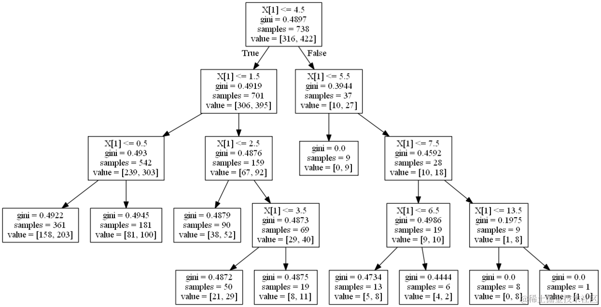 建议使用min_samples_split或min_samples_leaf来控制叶节点处的采样数。非常小的数字通常意味着树将过度拟合,而大的数据将阻止树学习。