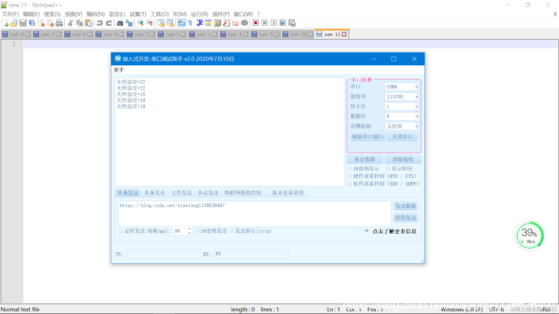 printf("光照强度=%d\r\n",val);
