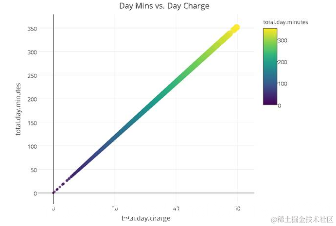 从结果中可以看到,total.day.calls和total.day.charge之间存在一定的相关关系。
