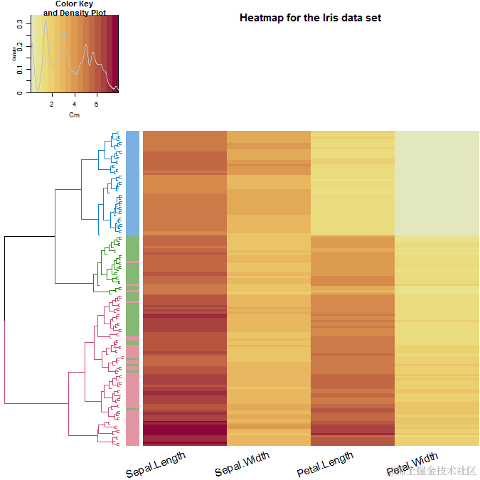 在热图中,我们还可以看到Setosa物种的花瓣值如何(浅黄色),但很难看出其他两种物种之间的明显区别。