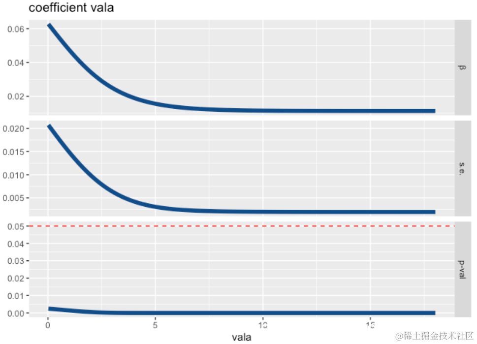 还可以根据转换变量绘制系数曲线,标准误差和p值。